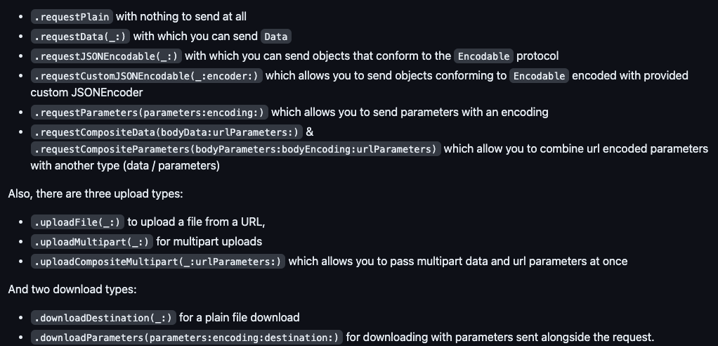영어라서 어질어질하지만 간단히 살펴보자면 Moya는 Alamofire를 한번더 추상화하였으며, 일반적인 것들(common things)과 복잡한 것들 모두 쉬워야(easy)한다고 합니다. Moya는 뭔가 추상화를 통해 더욱 쉬운 네트워크 통신을 목적으로 만들어진 것 같습니다.